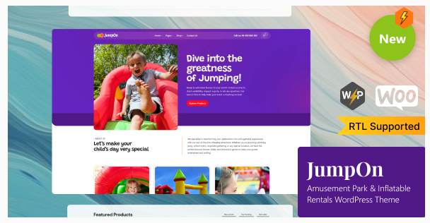 JumpOn – Amusement Park and Inflatable Rental WordPress Theme JumpOn is the ultimate WordPress theme designed for fun! JumpOn has a distinctive aesthetic and user-friendly features that make it easy to showcase your attractions, manage reservations, and engage visitors.